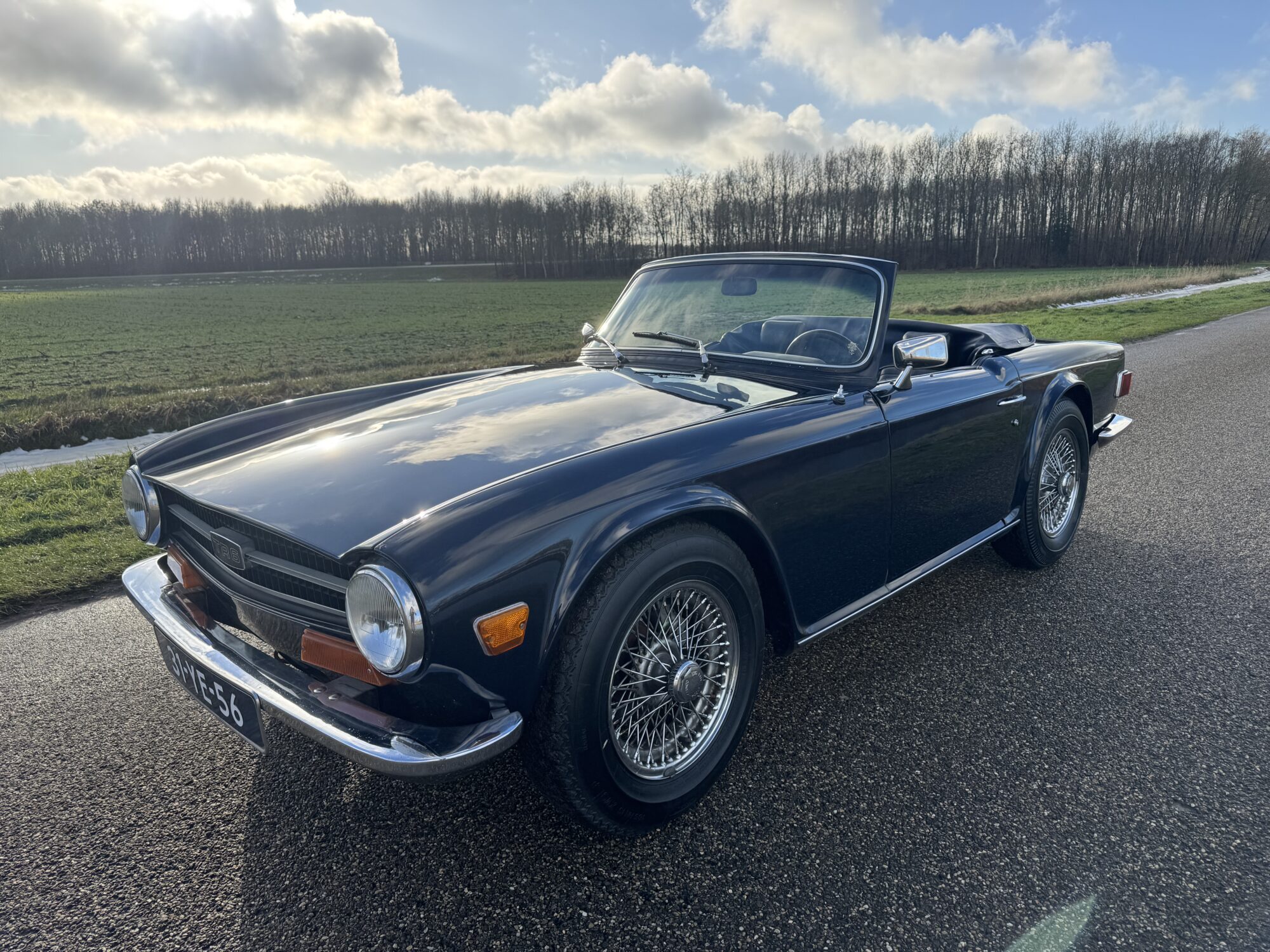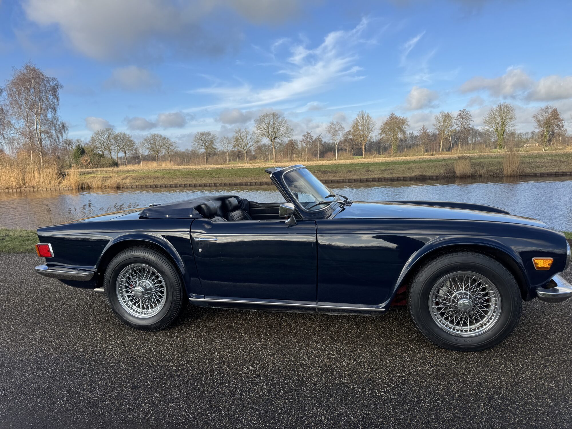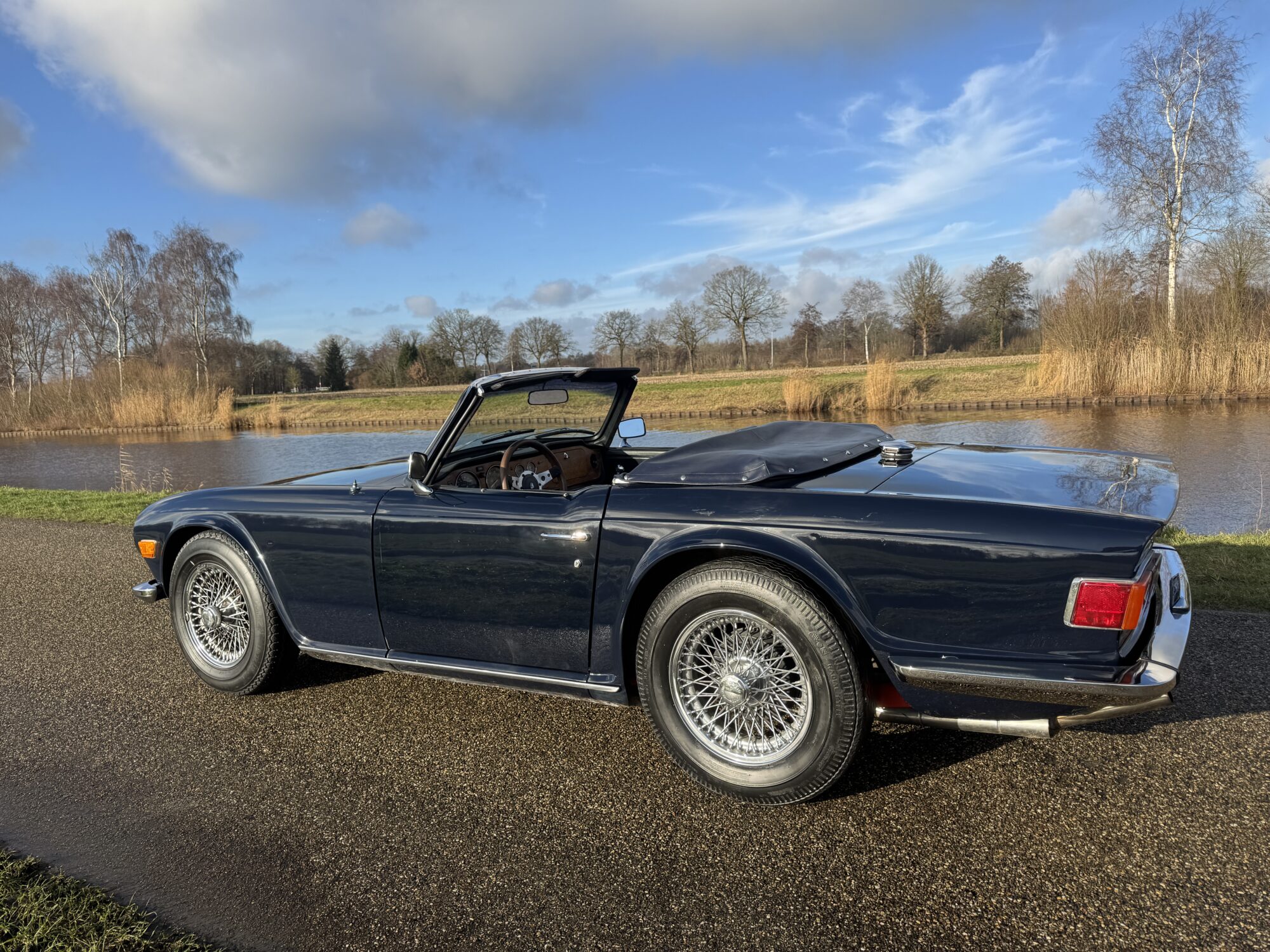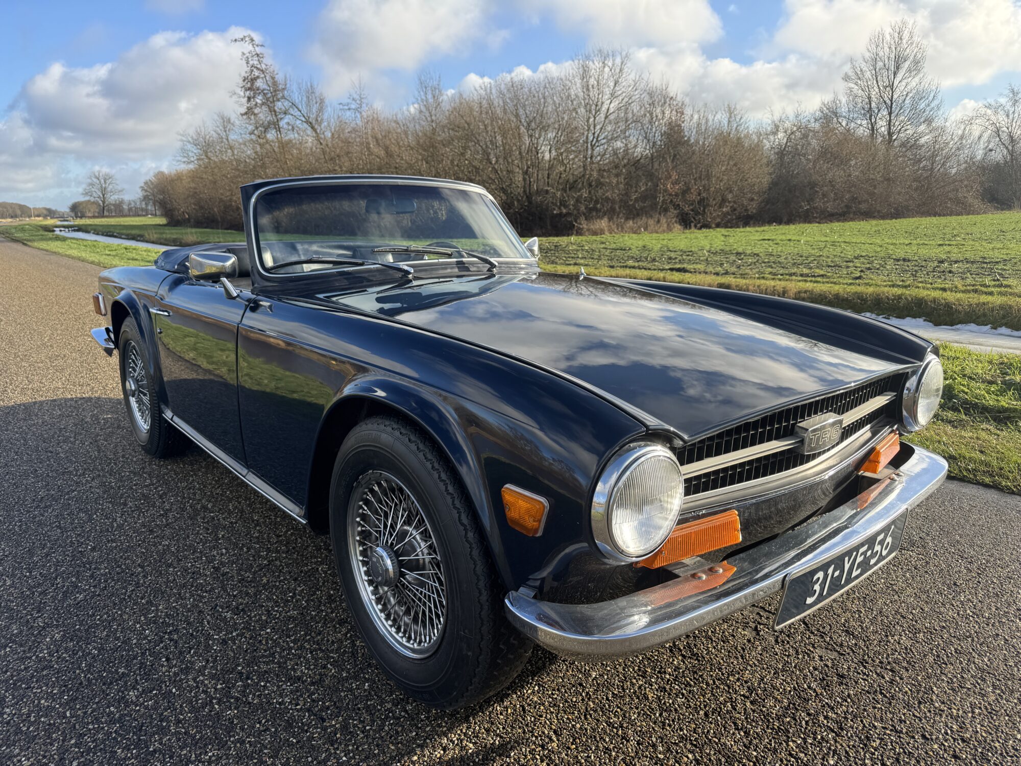 Deze TR6 is voor de echte ‘petrol head‘, een zeer nette Engelse sportwagen met een krachtige 2.5 liter motor en prachtige kleuren (Royal Blue) lakwerk in goede gebruikte staat