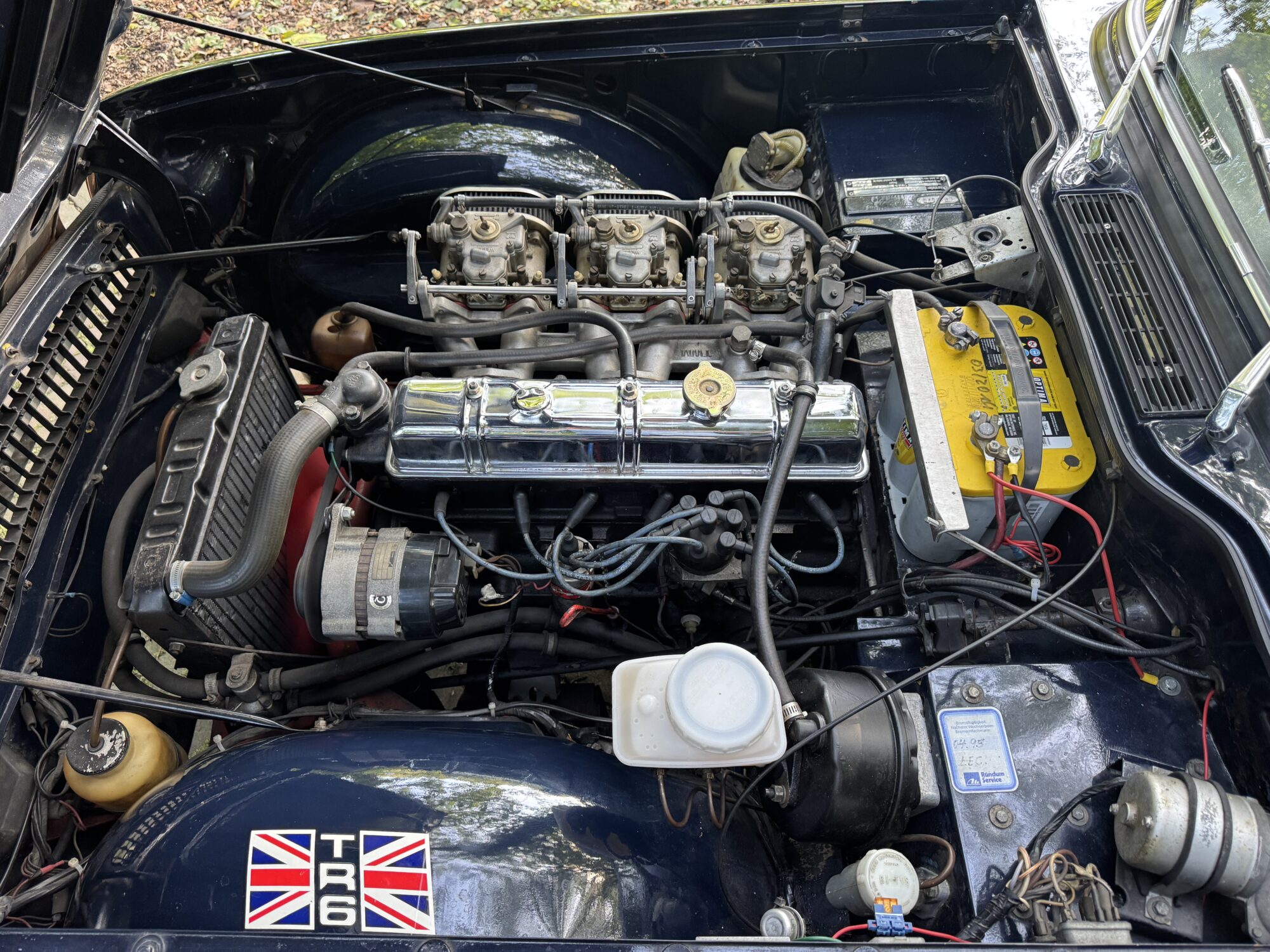 De TR6 heeft jaren in een garage opgeslagen gestaan, is door ons volledig nagekeken,