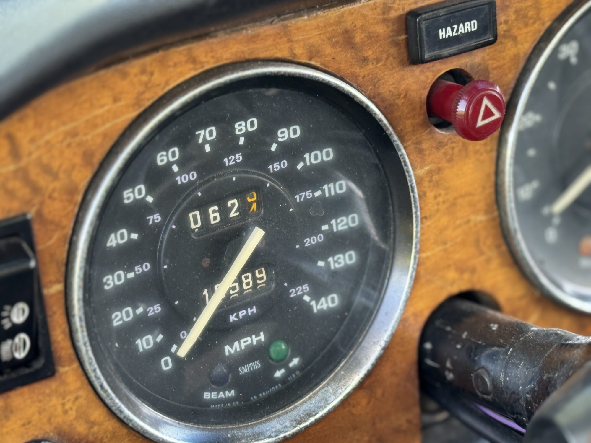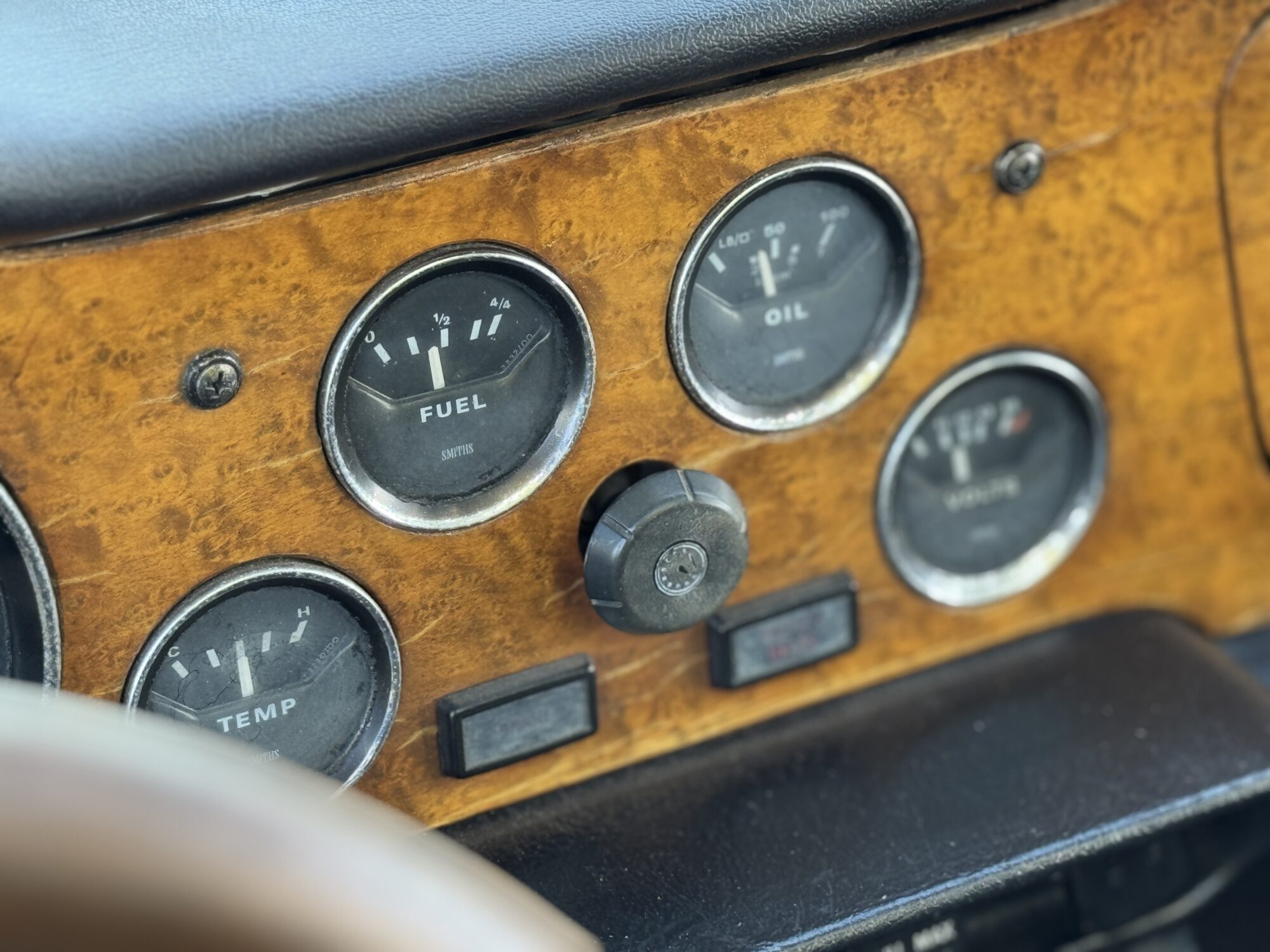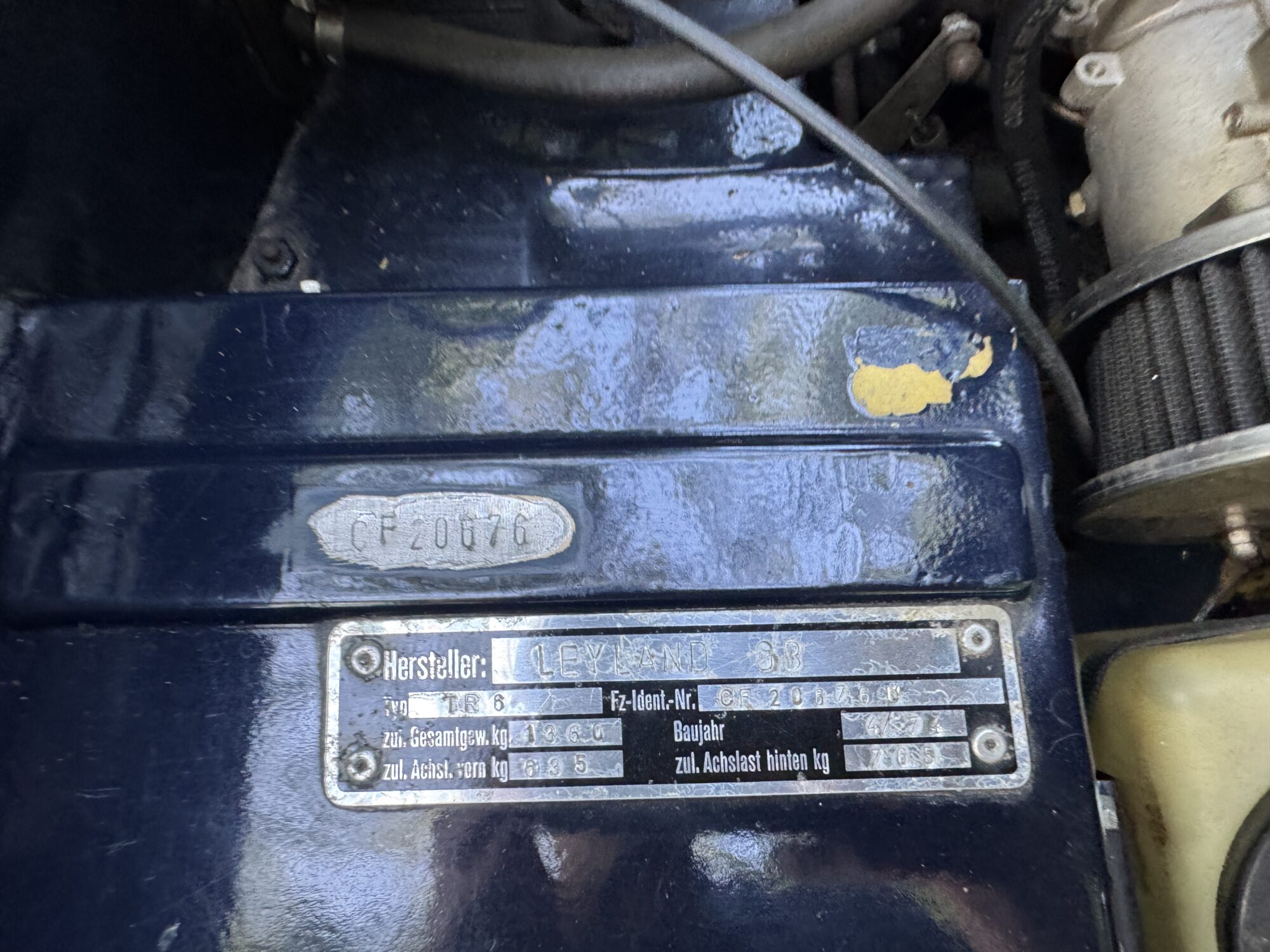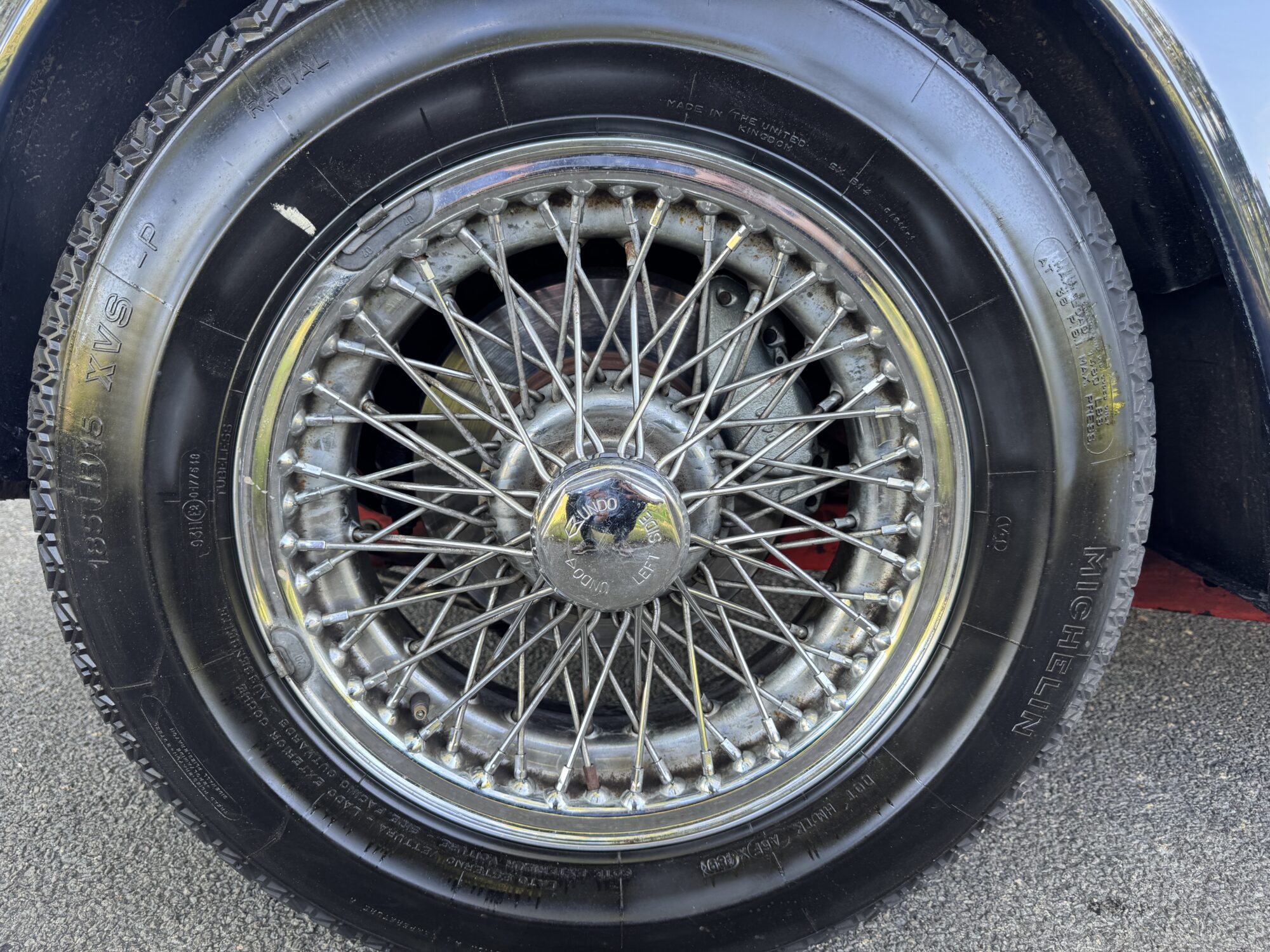 Het interieur beschikt over twee originele lederen stoelen met hoofdsteun, een noten dashboard met originele Smiths tellers, overdrive aan de pookknop, lederen handrem-hoes.
