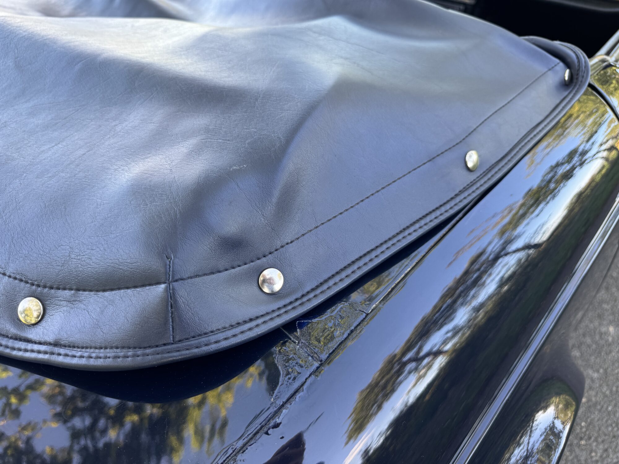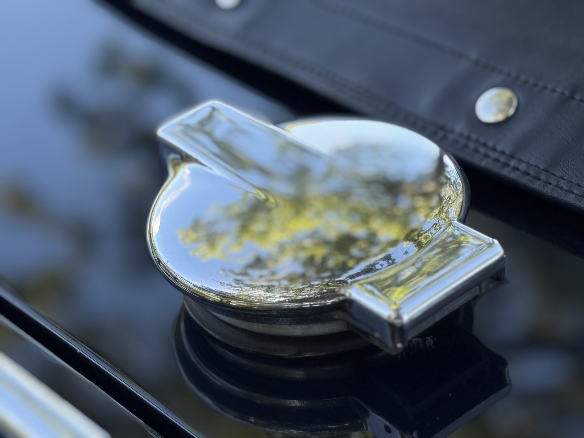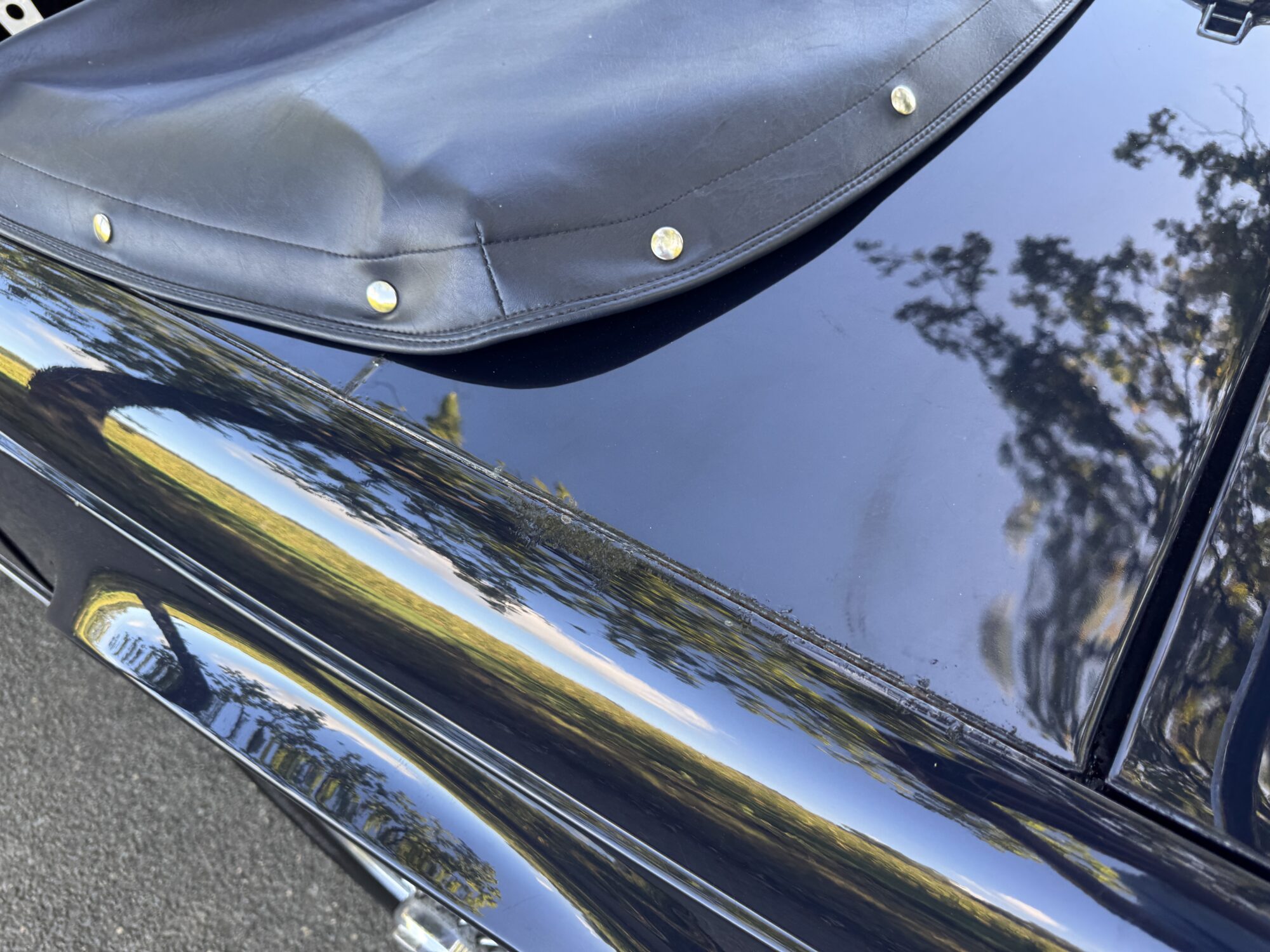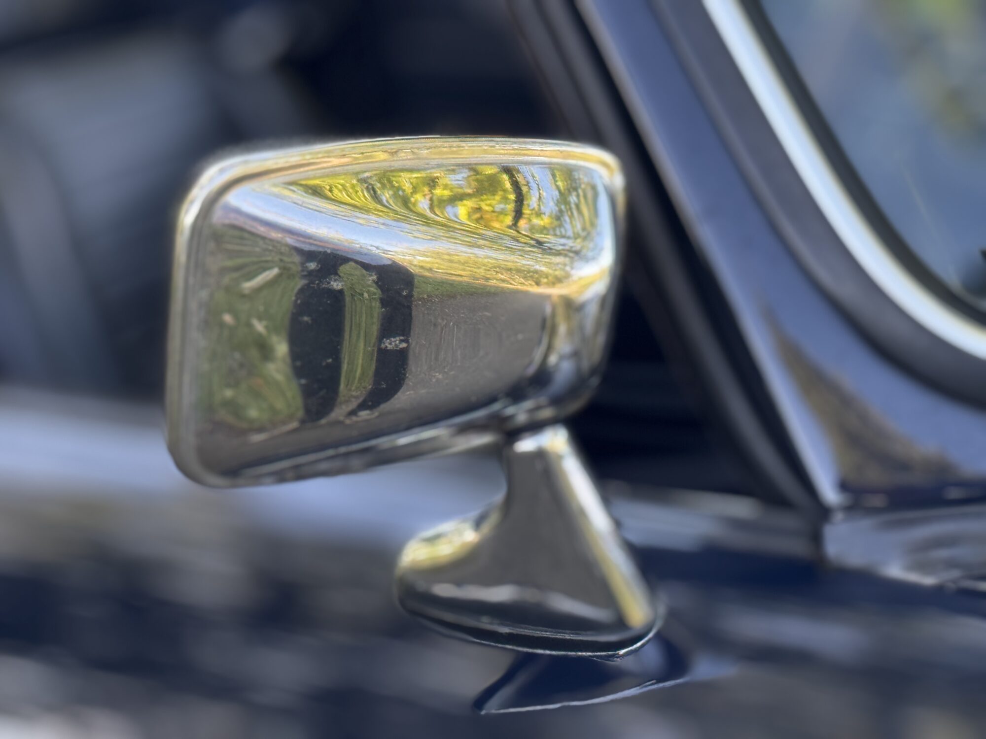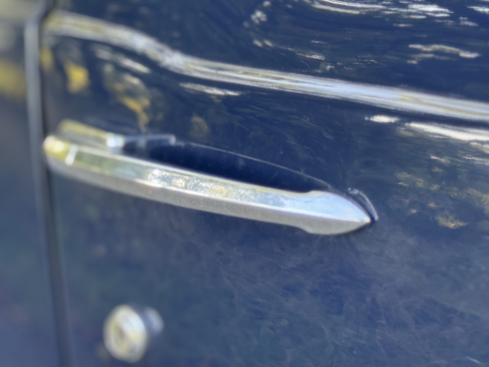 het lakwerk is in goede staat met enkele gebruikersporen (oudere restauratie) en geleverd in Royal blue. Deze kleurencombinatie is echt prachtig! deze donker blauwe lak gecombineerd met chromen details en zwart lederen sportstoelen.