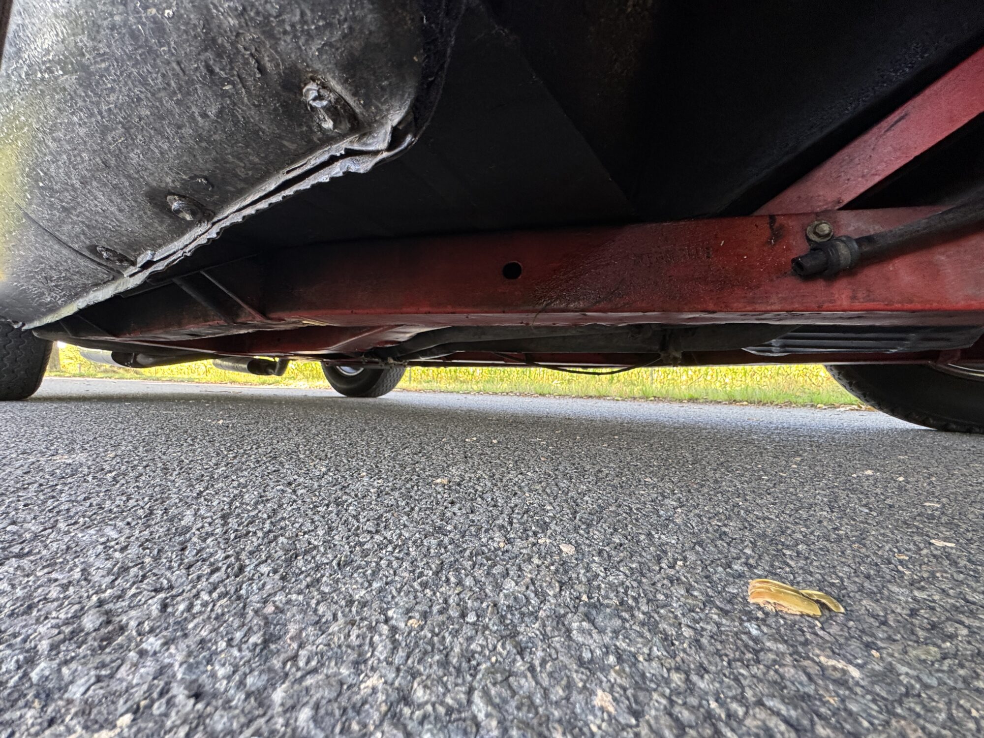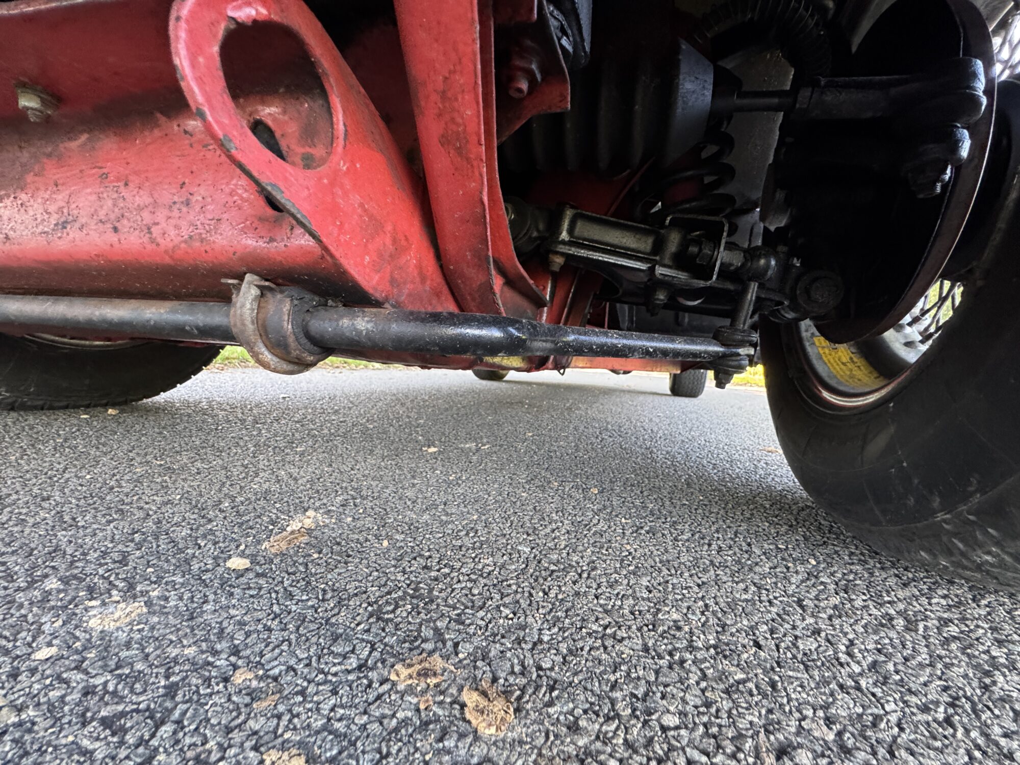 De bodem is solide met rood gepoedercoat chassis.